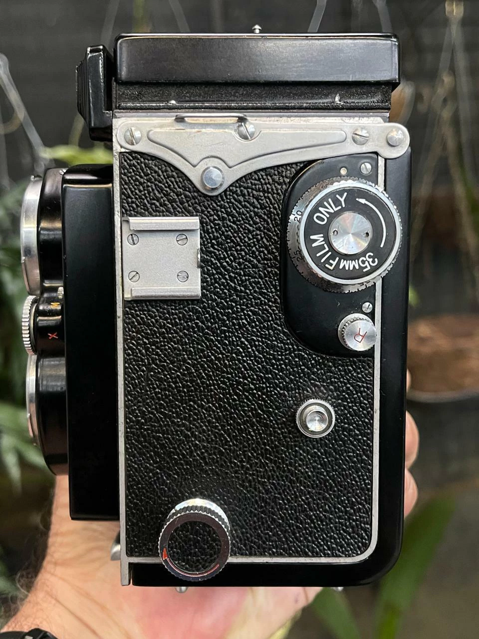 Tipo: TLR (Twin Lens Reflex) de médio formato.